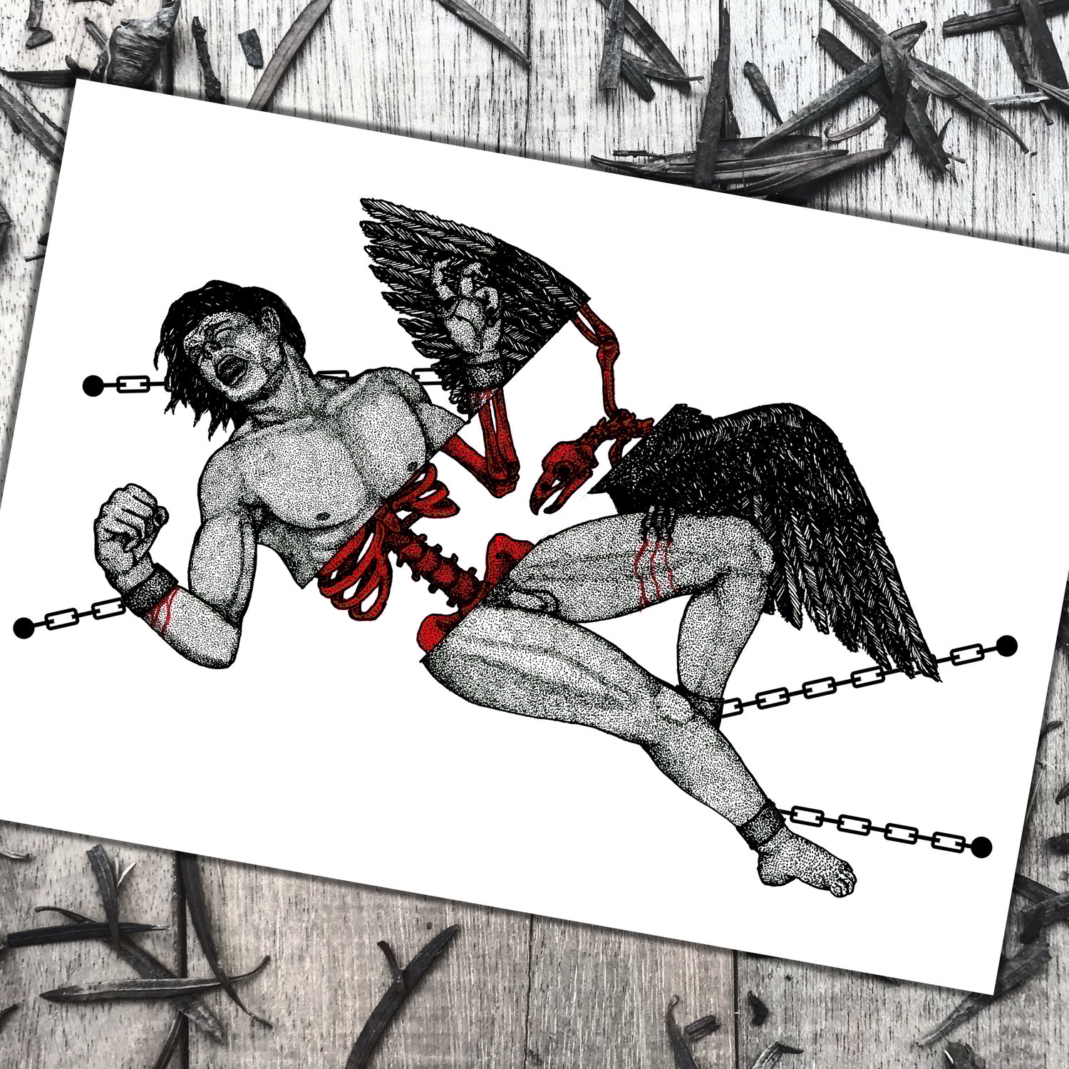This angered Zeus, who punished Prometheus. He was chained to a mountain, where an eagle would tear into him and eat his liver. As he was immortal, he would heal every night, only for the process to repeat the next day.