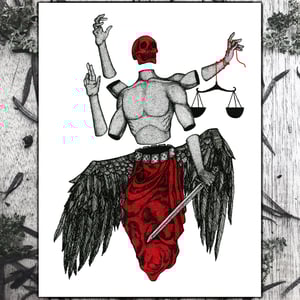 He is often said to carry a flaming sword and perfectly balanced scales which he uses to weigh souls.