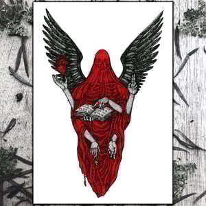 This is Azrael, the Angel of Death. He is described in Hebrew and Islamic lore and he is said to be “forever writing in a large book and forever erasing what he writes”. He writes a name when a human is born, and he erases a name when a human dies. Azrael was appointed to separate the soul from the body and carry it to the heavens and it is said that upon death, Azrael is the first angel you meet.